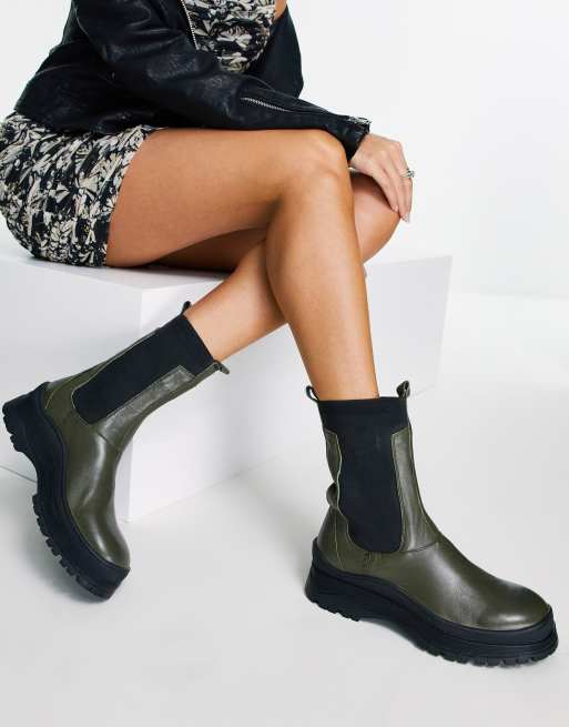 ASRA Chayote pull on chelsea boots in khaki leather Very well made.