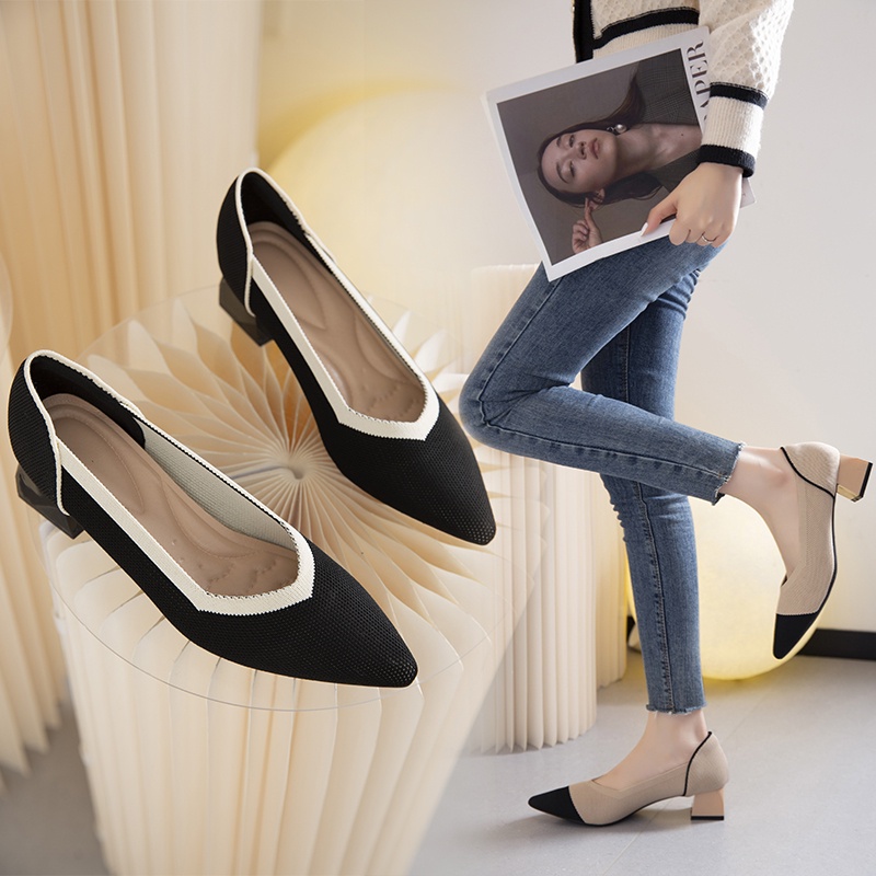 Fashionable Women s Chunky Heel Pointed Toe Flat Shoes SHEIN Very well made.