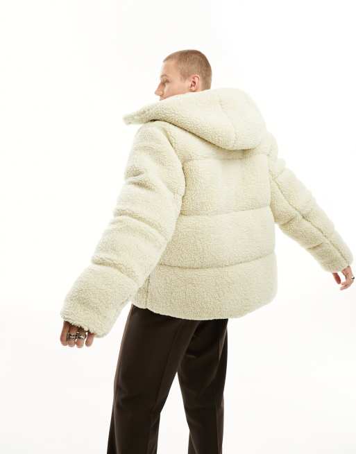 ASOS DESIGN borg puffer jacket with removable hood in ecru Very well made.