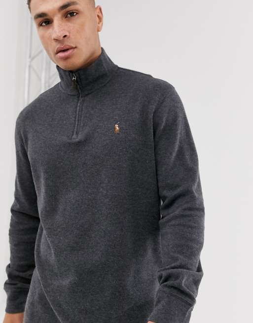 Polo Ralph Lauren half zip knitted jumper in grey marl with multi player logo Very well made.