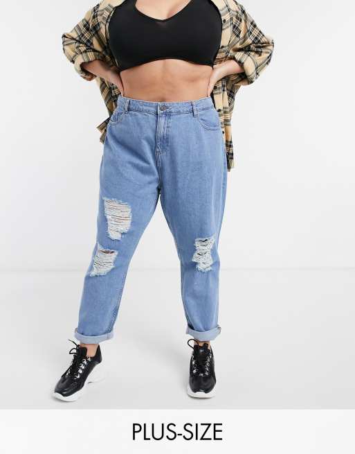 Noisy May Curve destroyed mom jeans in mid blue wash Very well made.