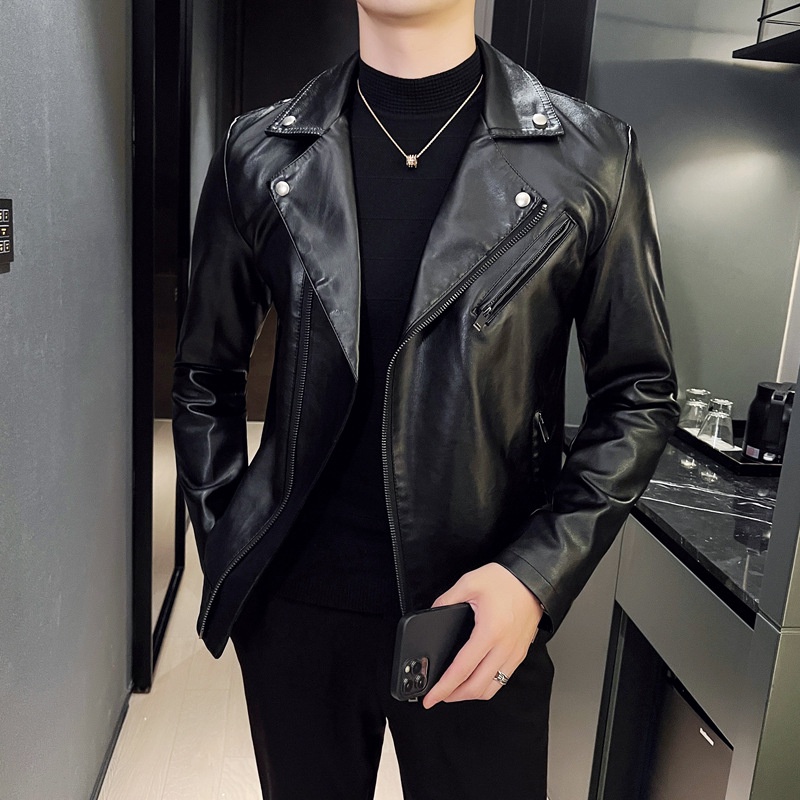 Spring Autumn Men Diagonal Zipper Leather Jacket Men Korean Very well made.