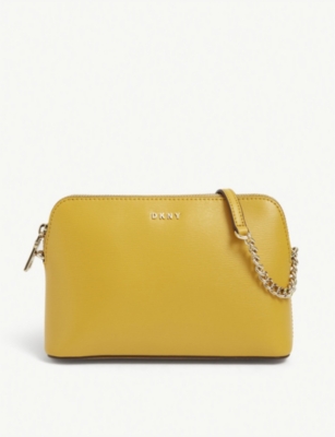 DKNY Bryant Logo plaque Leather Cross body Bag in Natural Lyst Very well made.