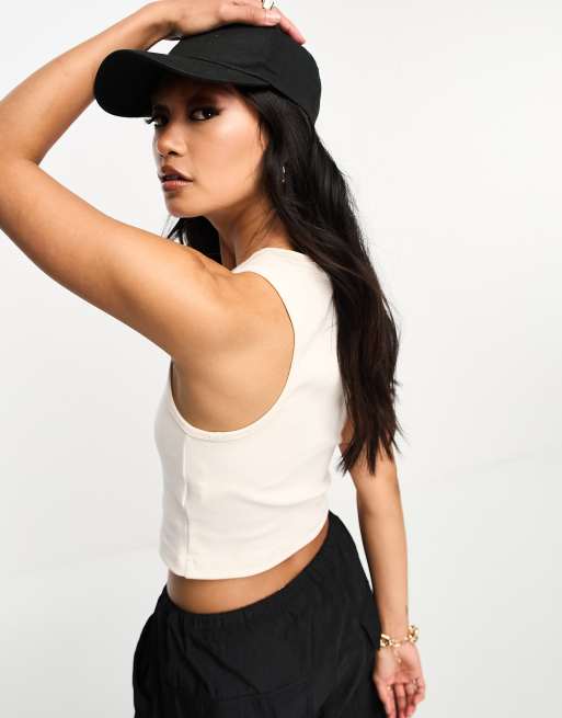 adidas Originals Essential ribbed cropped tank top in white Very well made.