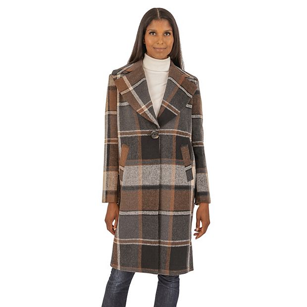 Women s Fleet Street Wool Blend Long Plaid Coat Very well made.