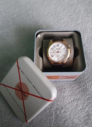 Womens Fossil BQ3121 Rose Gold Chronograph Watch New Batt Blue Leather Very well made.