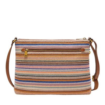 FOSSIL Kinley Crossbody Large Bag Multicolor Checked Fabric Brown Leather ZB7611 Very well made.