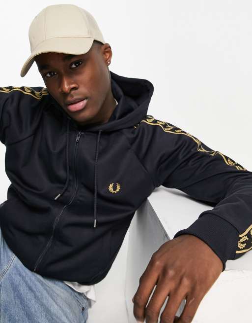 Fred Perry gold taped zip through hoodie in navy Very well made.