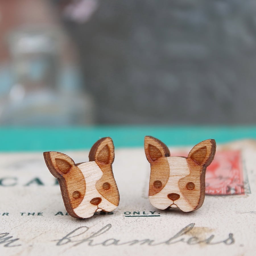 Wooden French Bulldog Stud Earrings Very well made.