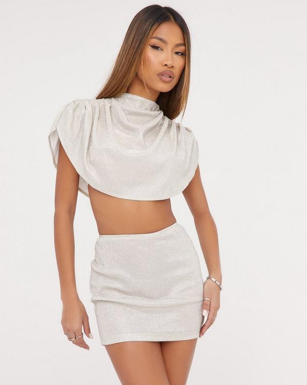 High Neck Drape Front Detail Crop Top In Gold Glitter EGO Very well made.