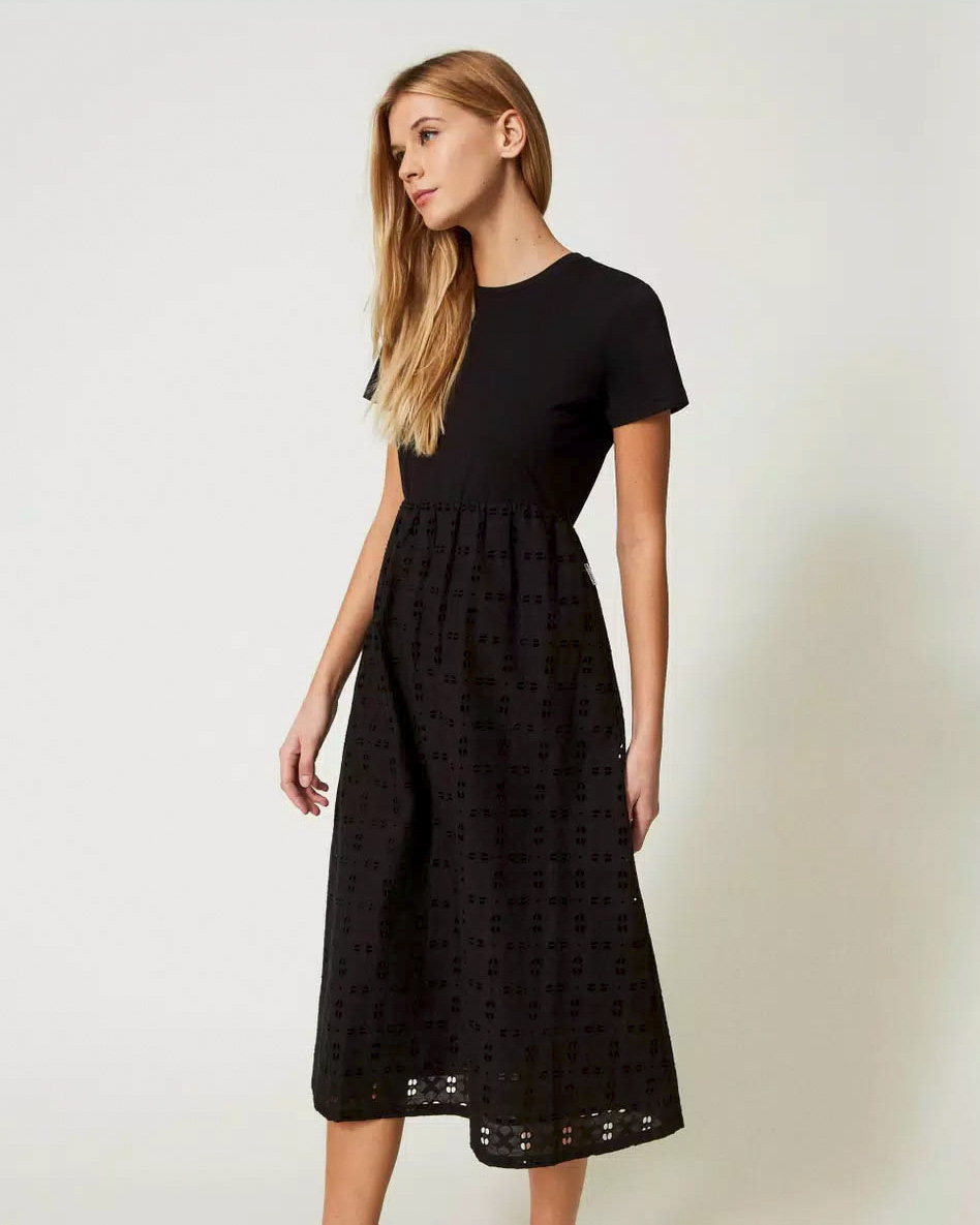 Abito midi nero con gonna in pizzo di cotone sangallo e top Very well made.