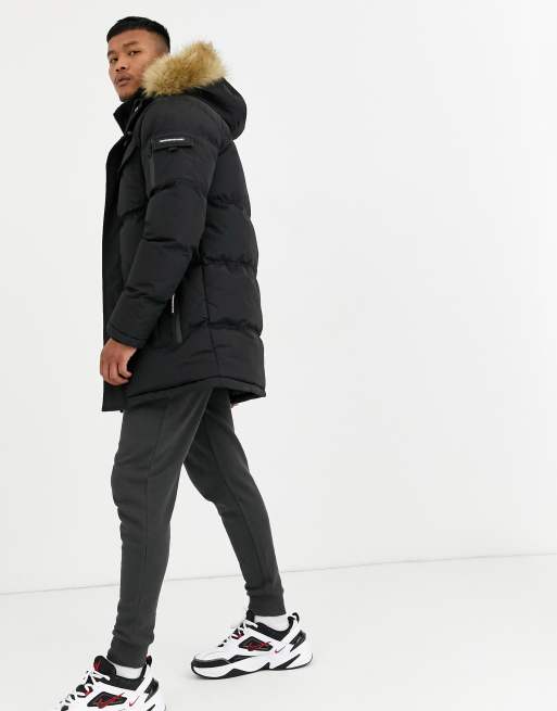 Good For Nothing parka jacket in black with faux fur hood Very well made.