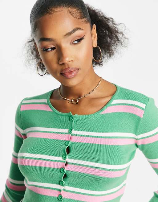 Urban Revivo striped cropped cardigan in green and pink Very well made.