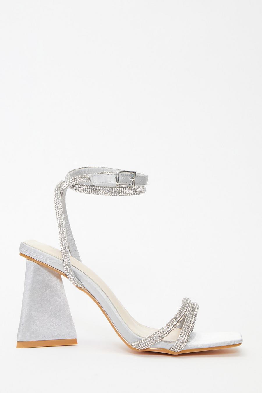 Grey Satin Diamante Triangle Heeled Sandals Quiz Clothing Very well made.