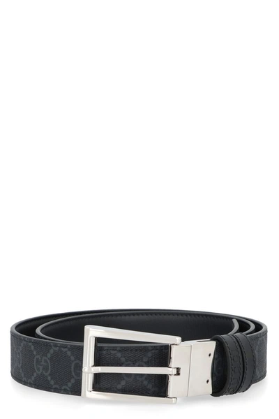 Gucci Leather And Gg Supreme Fabric Reversible Belt In Black Very well made.