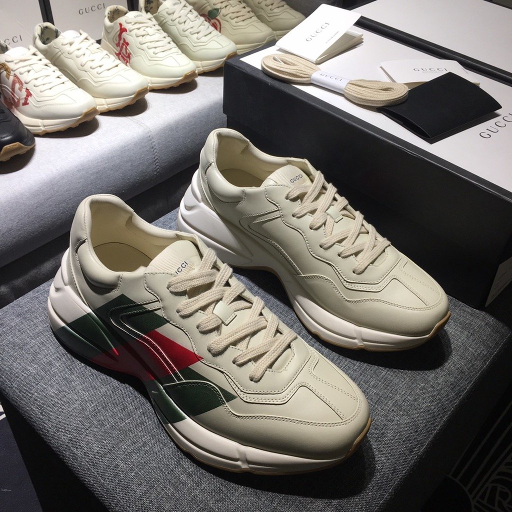 Men s Ivory Leather Rhyton Vintage Gucci Logo Sneaker GUCCI AE Very well made.