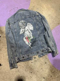 Young Thug Denim Cherub Jean Jacket Sold out Rap Hip Hop Mens Very well made.