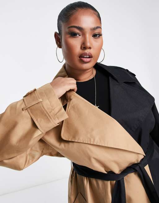 ASOS DESIGN Curve half and half trench coat in black and stone Very well made.