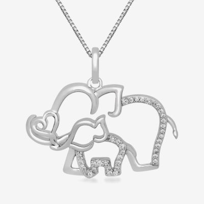 Hallmark Diamonds Mother And Baby Elephant Womens 1 10 CT. T.W. Mined White Diamond Sterling Silver Heart Pendant Necklace Very well made.