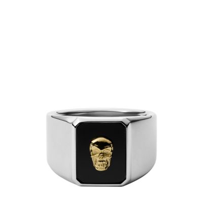 Skull Black Agate Signet Ring JF03846998001 Fossil Very well made.