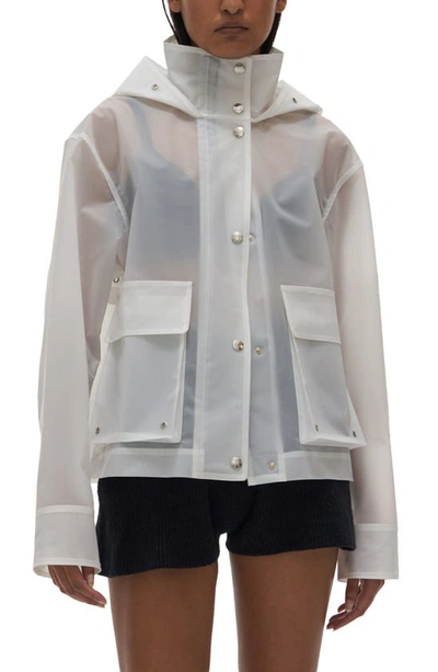 Semi translucent Hooded Vinyl Rain Jacket In White Very well made.