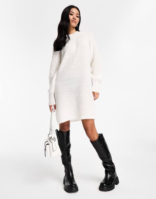 Pieces high neck knitted mini jumper dress in cream Very well made.