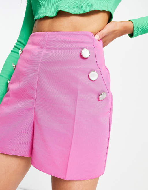 ASOS DESIGN high waisted shorts with button detail in pink Very well made.
