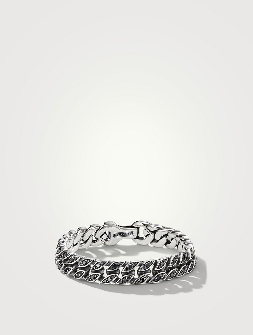 Curb Chain Bracelet In Sterling Silver With Pav Black Diamonds Very well made.