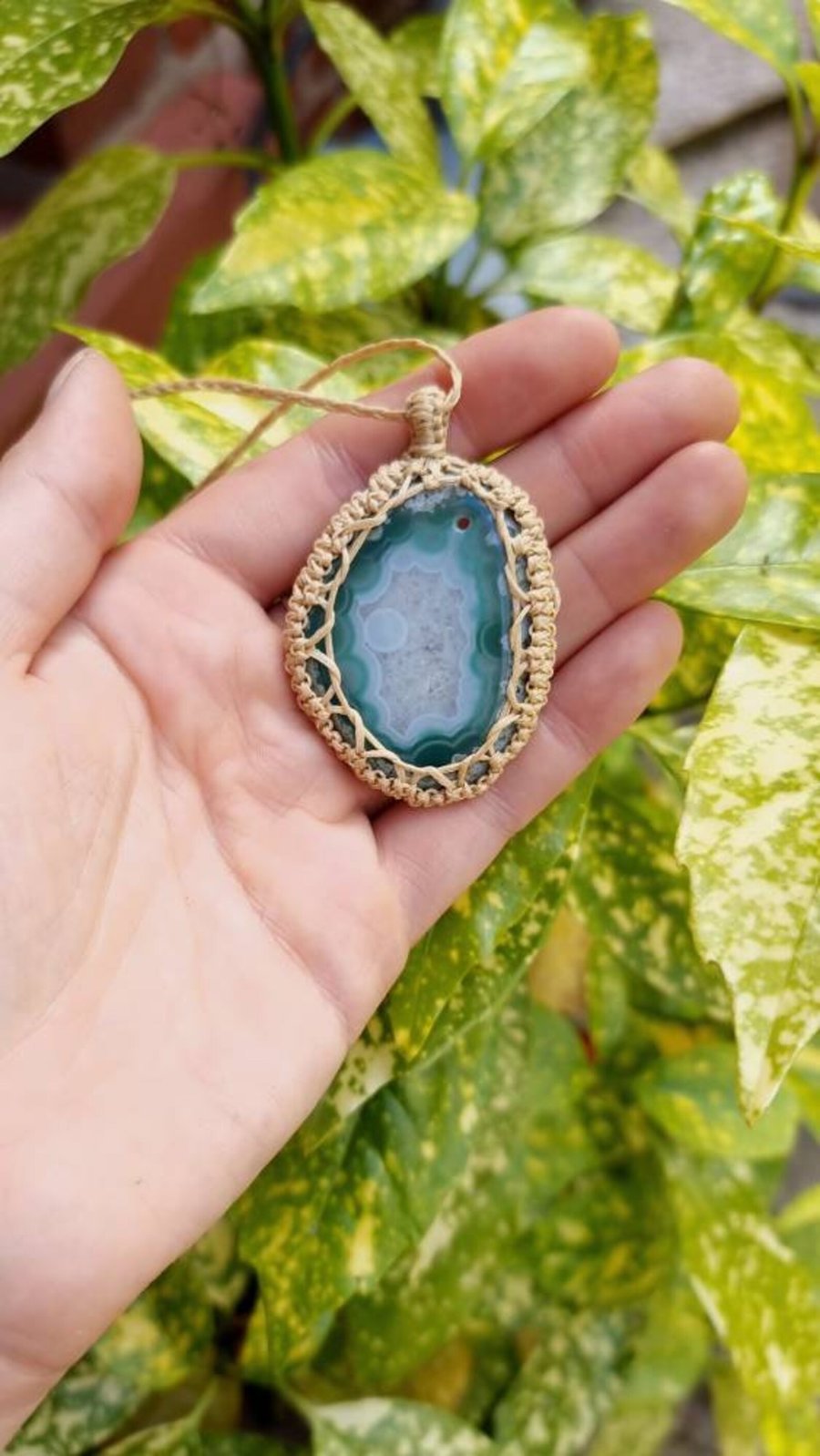 Agate Slice Macrame Necklace Pendant Gemstone Folksy Very well made.