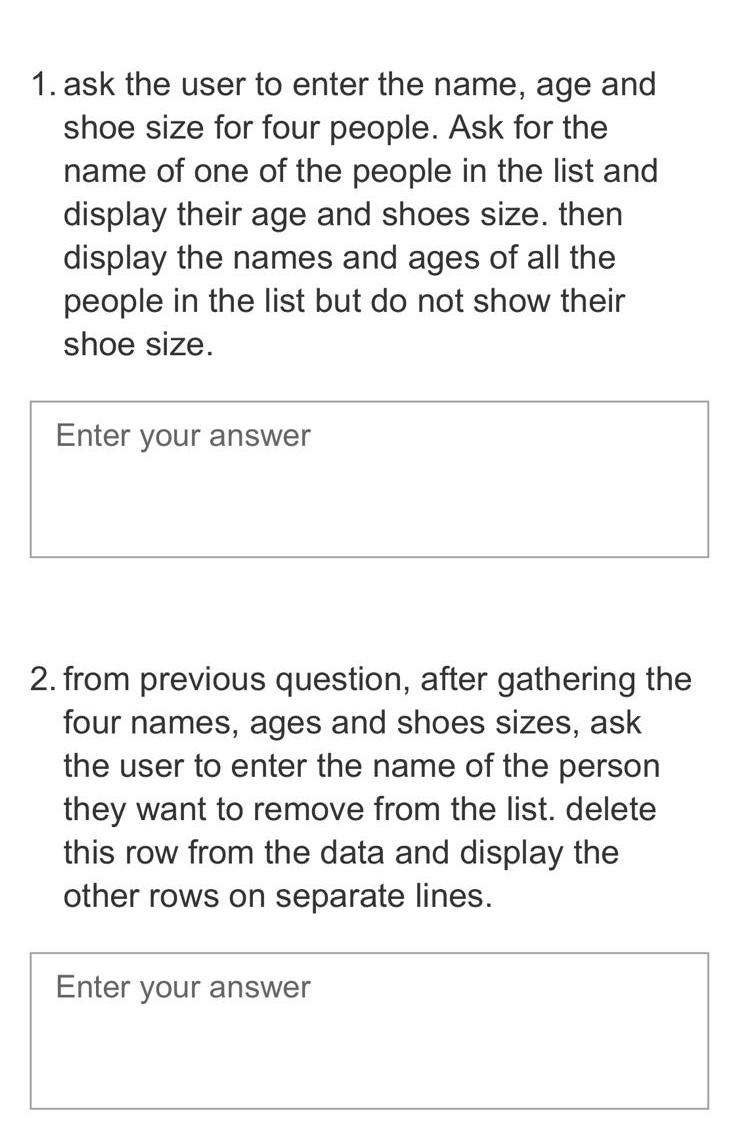 Solved 1. ask the user to enter the name age and shoe size Very well made.