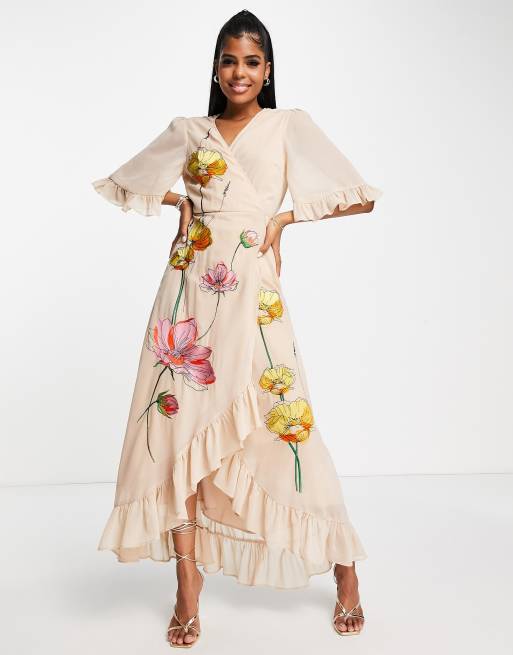 Hope Ivy Maxi Wickelkleid in Pfirsich mit Blumenmuster und Stickerei Very well made.