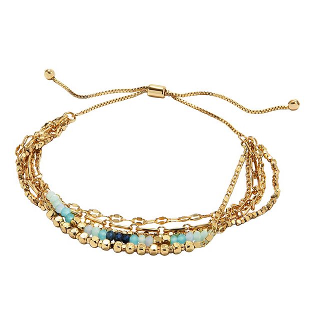 LC Lauren Conrad 5 Row Multi Chain Blue Beaded Pull Tie Bracelet Very well made.