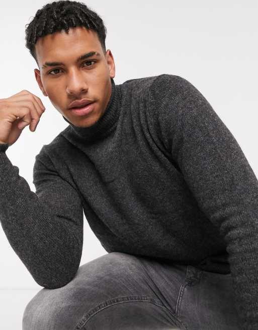 ASOS DESIGN lambswool roll neck sweater in charcoal ASOS Very well made.