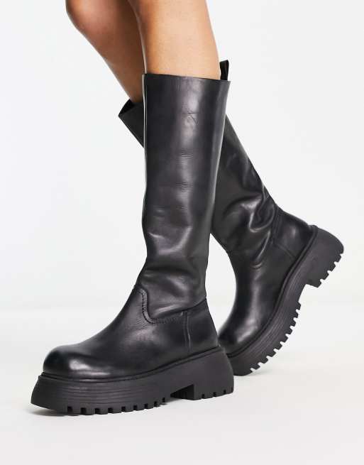 ASOS DESIGN Candy chunky leather knee boots in black Very well made.