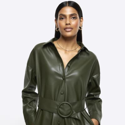 Khaki faux leather belted mini shirt dress River Island Very well made.