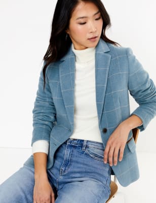 Wool Blend Checked Single Breasted Blazer M S Collection M S Very well made.
