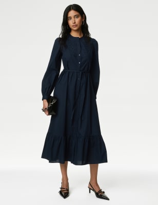 Pure Cotton Broderie Midaxi Waisted Dress M S CA Very well made.