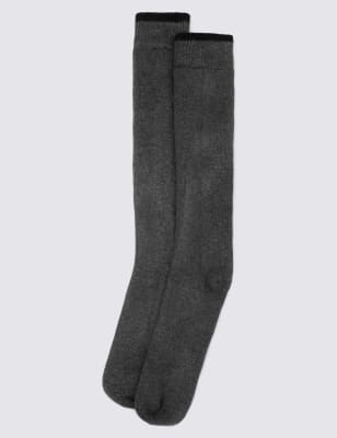 Mens thermal socks long wool rich Black M S UK size 6 7.5 vintage UK made Very well made.