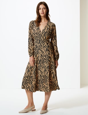 Animal Print Wrap Midi Dress M S Collection M S Very well made.