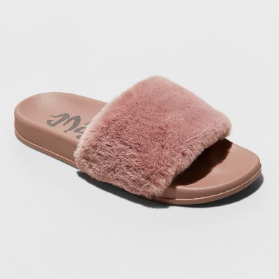 Women s Flat Sandals Slip On Faux Fur Pink Very well made.