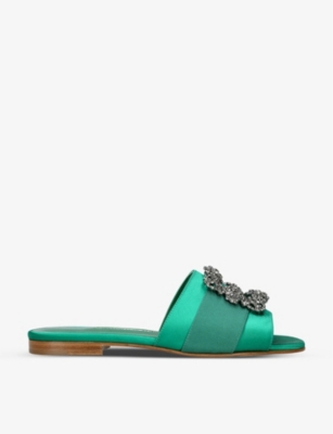 MANOLO BLAHNIK Martamod crystal embellished satin flat sandals Very well made.