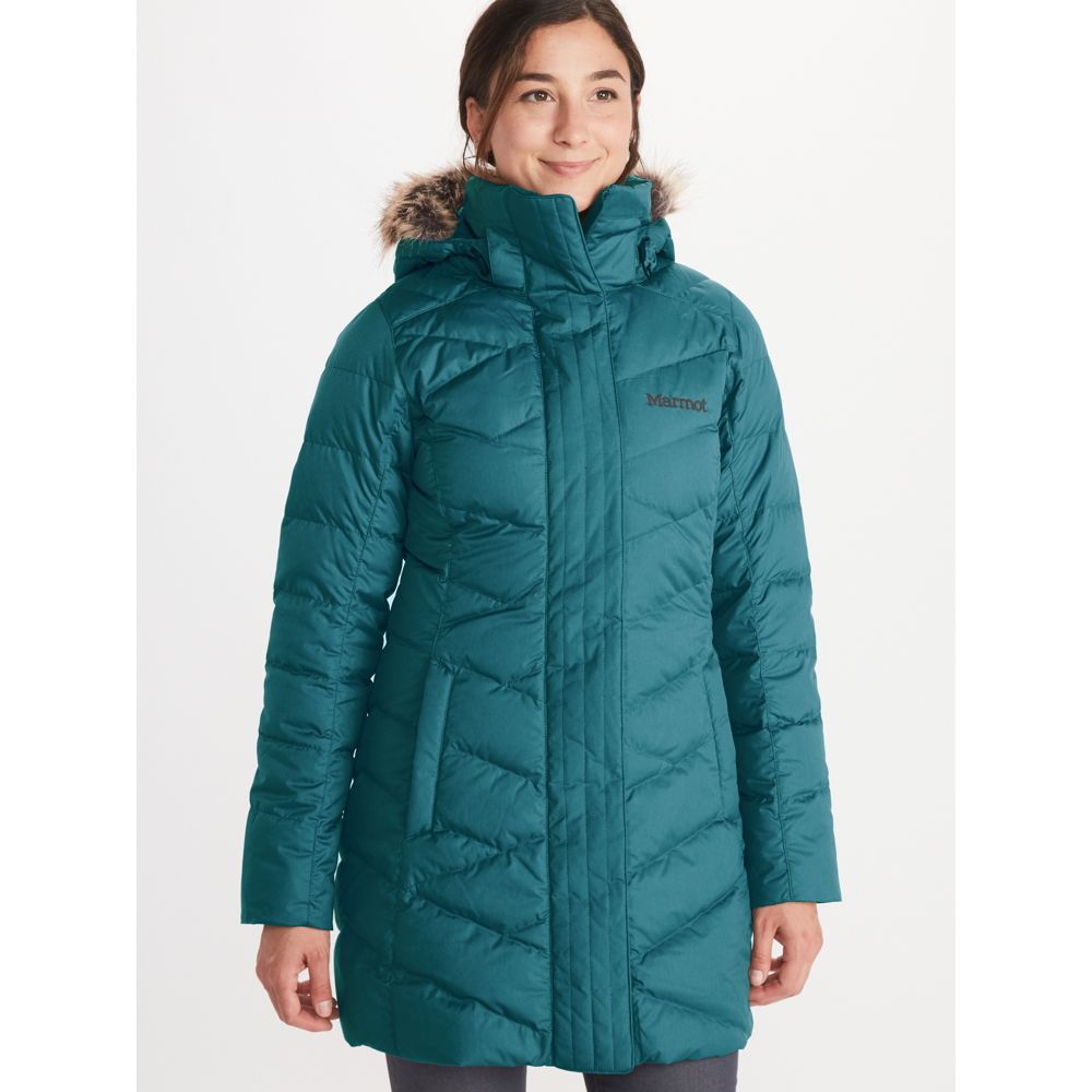 Marmot Women s Varma Long Down Jacket Coat Storm Cloud Blue Large NEW Very well made.