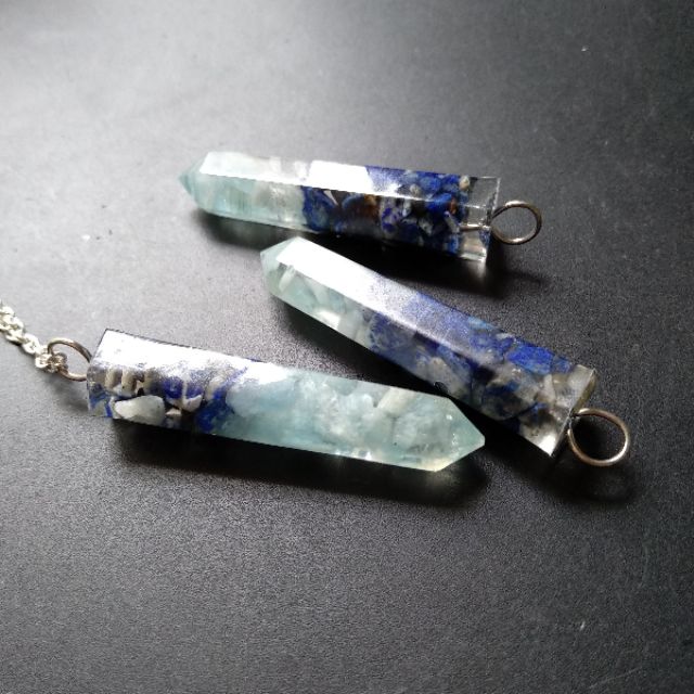 Blue Lapis Lazuli Aquamarine Crystal Pendant Orgone Energy Very well made.