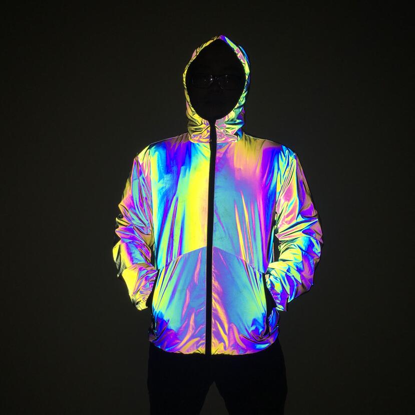 Autumn Winter Men Night Colorful Reflective with Hooded Jacket Very well made.