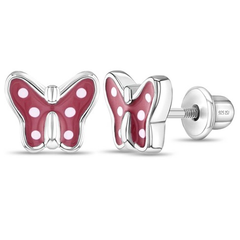 Girls Polka Dot Butterfly Screw Back Sterling Silver Earrings Very well made.