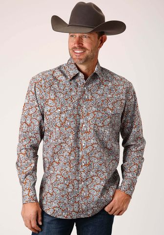 MENS LONG SLEEVE BUTTON STARRY NIGHT PAISLEY WESTERN SHIRT Roper Very well made.