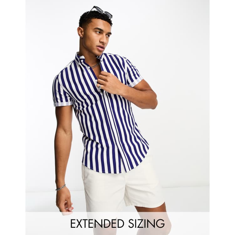 ASOS DESIGN stretch slim oxford stripe shirt in navy ASOS Very well made.