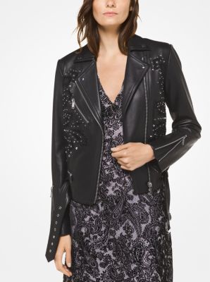 Embroidered Leather Moto Jacket Michael Kors Very well made.