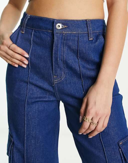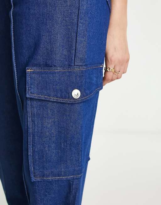 River Island high waisted wide leg cargo pocket jean in medium blue wash Very well made.