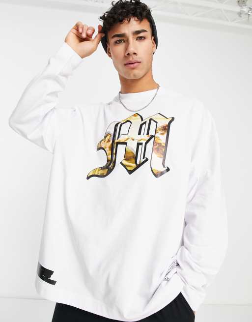 Topman longsleeve oversized t shirt with Michelangelo letter print in white Very well made.